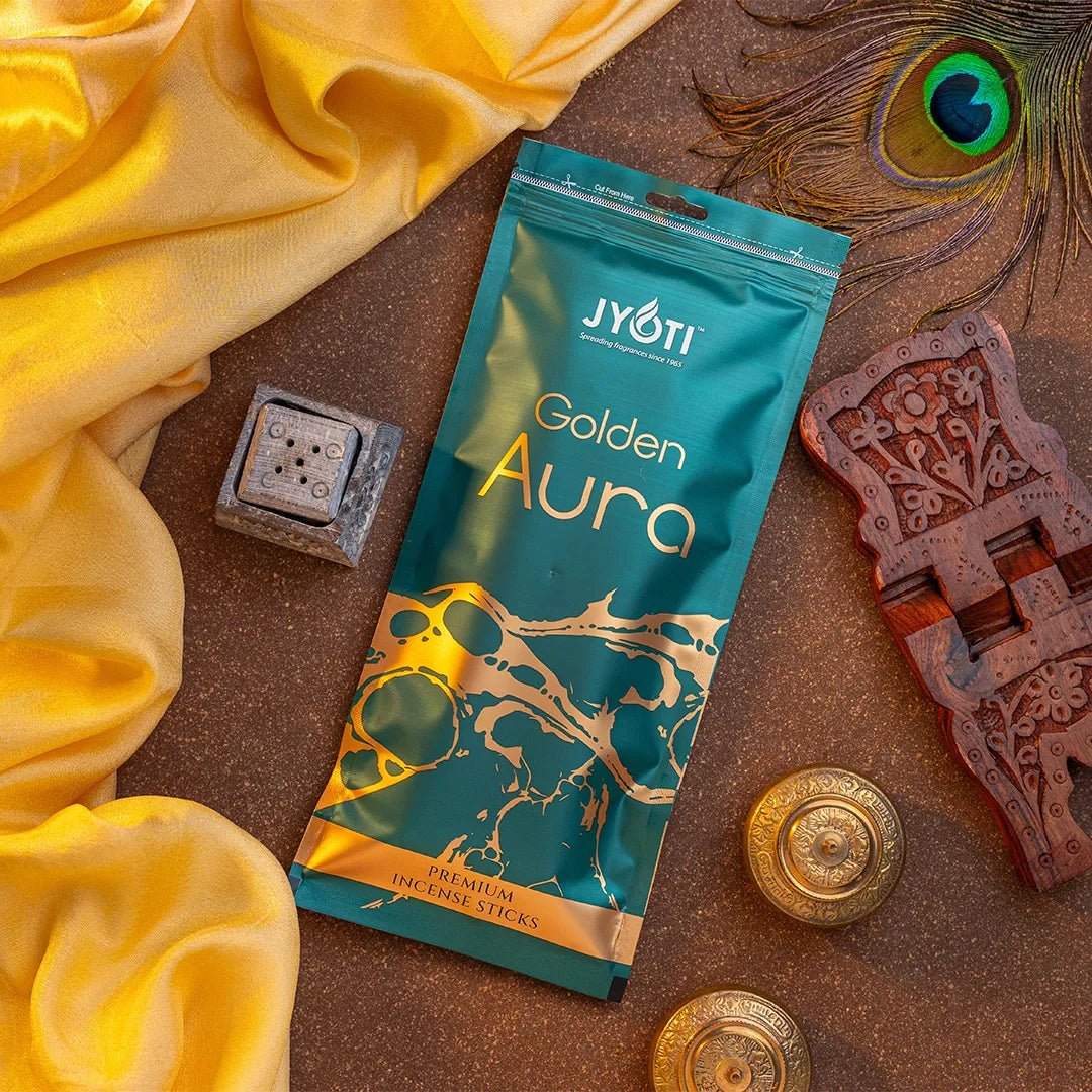 Golden Aura Incense Sticks – Zipper Pouch for Warm, Uplifting Fragrance
